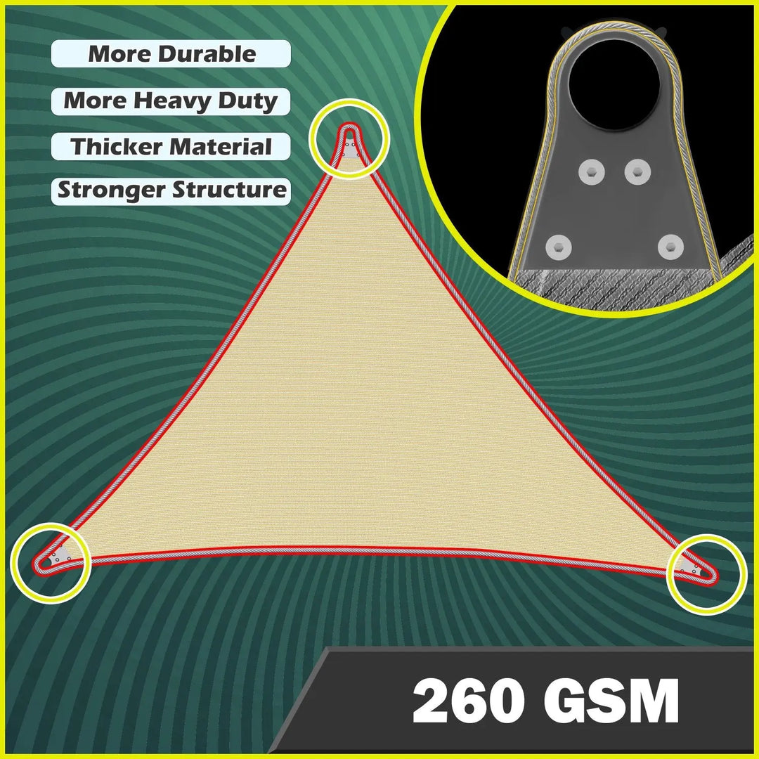The heart of the Super Ring Heavy Duty Sun Shade Sails lies in its exceptional construction. Crafted from 260 GSM 100% virgin HDPE (high-density polyethylene) material, these sails boast remarkable UV resistance, having been rigorously tested for up to 20,000 hours. This high-quality fabric not only guarantees longevity but also maintains its integrity against the elements.
