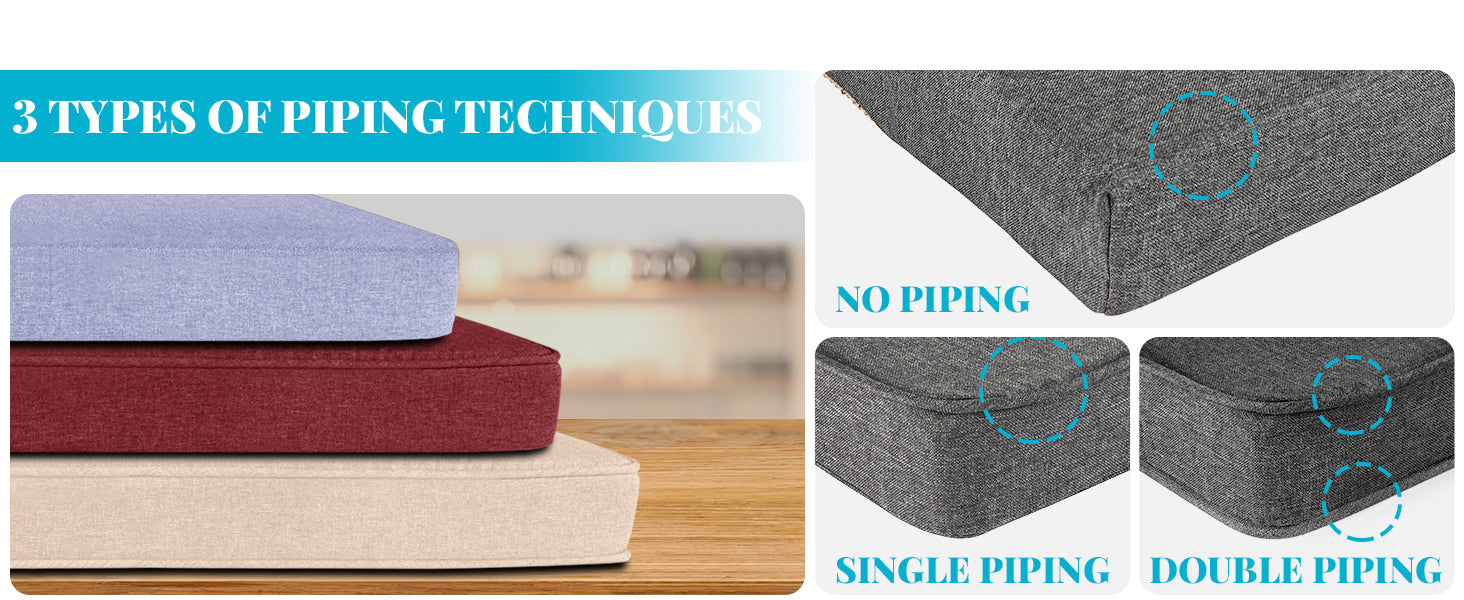 Not all cushions need to have ties and piping, but if your custom seat cushions need ties and piping to keep them in place, then this is the step where you’ll select the number of ties and let us know where they should be located.