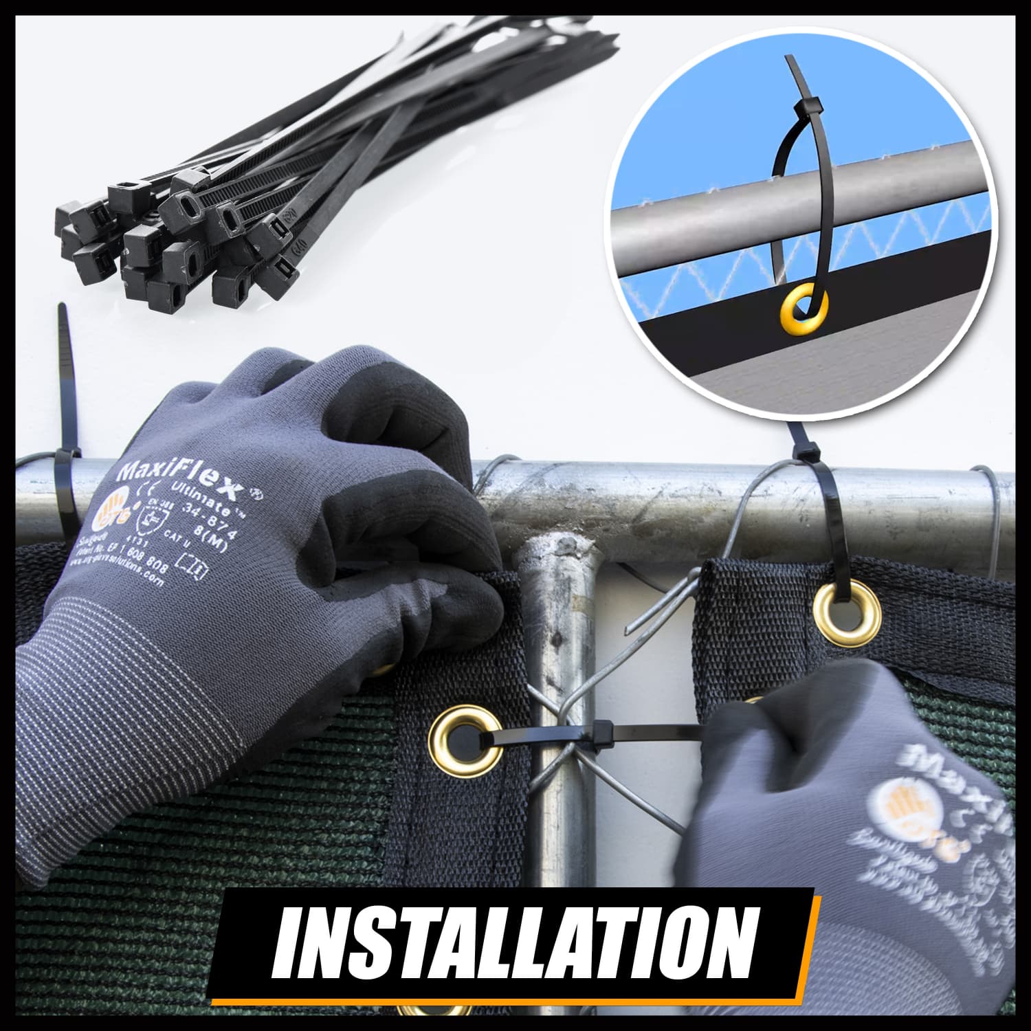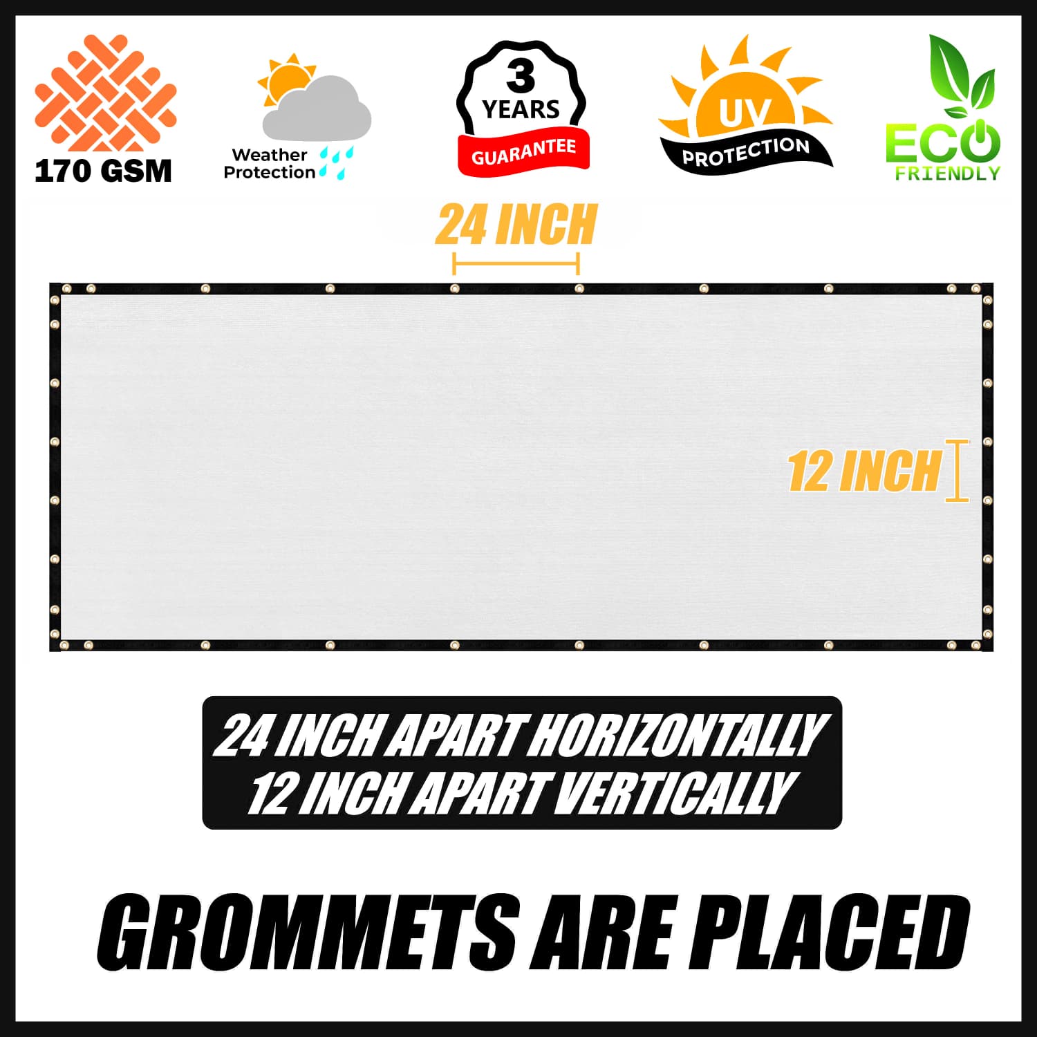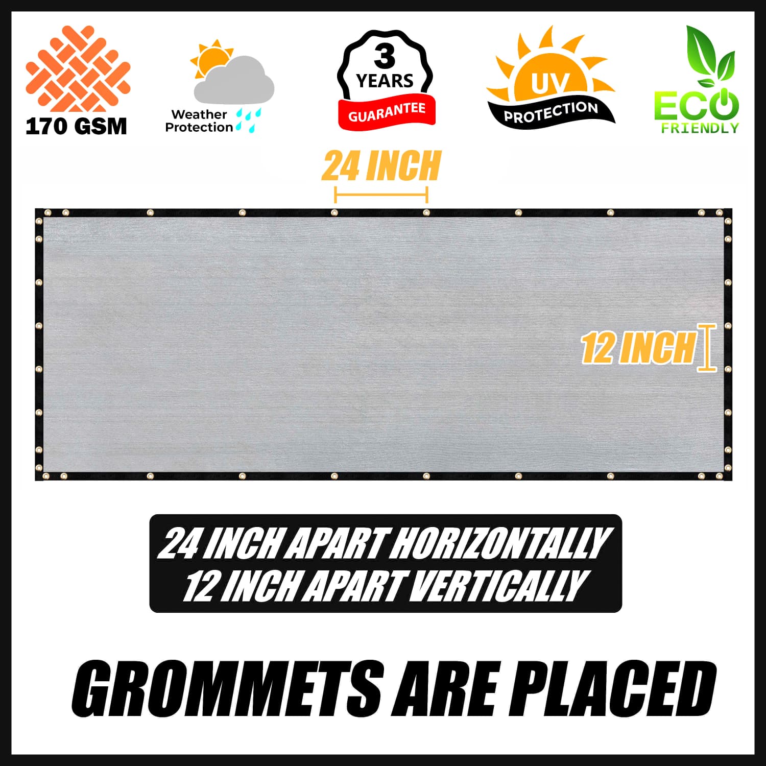 4 Grommets&Durable: Fabric is breathable which allows breeze to go through, made of UV & water resistant heavy duty commercial grade HDPE (High-density polyethylene), made to last under sun exposure and all weather condition.